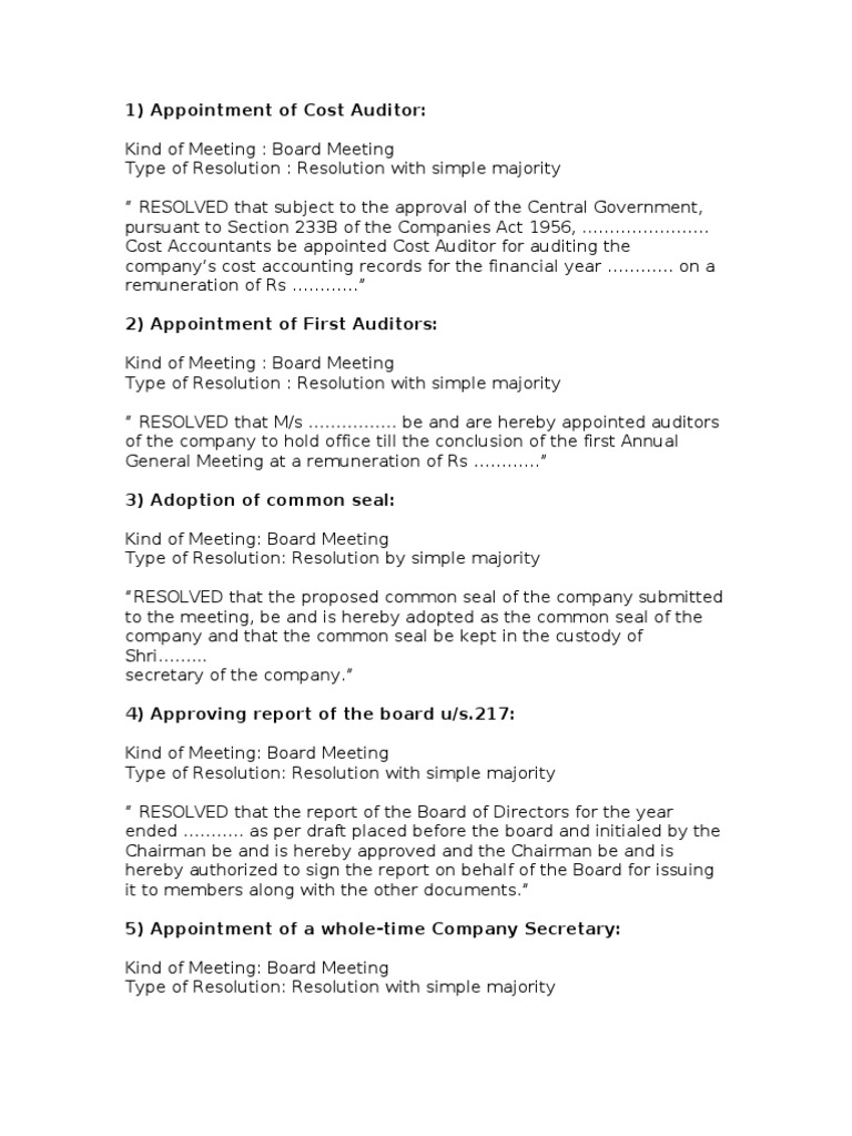 Sample Board Resolution - ONE.MOTORING - Home
